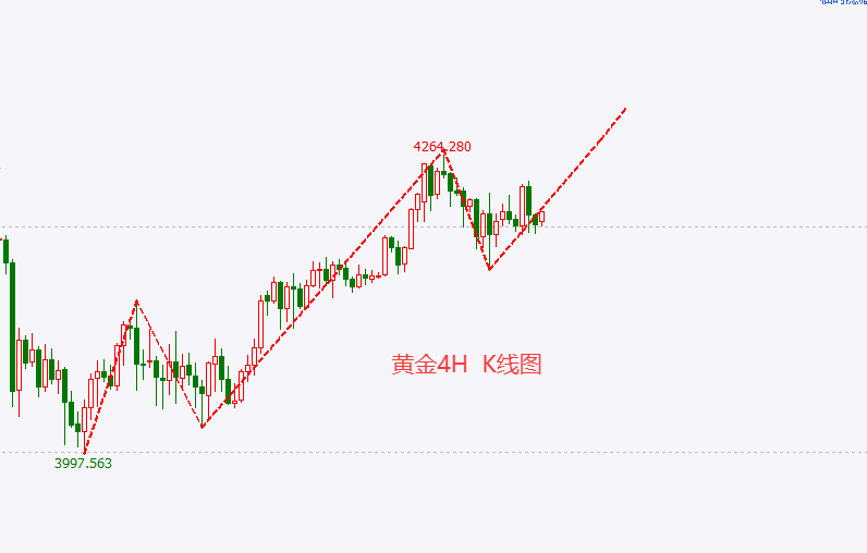 四小时线也是夯实底部形态,从均线下方开始发力,目前冲出均线的压制,碾压均线上行,而且大阳线实体强势多头,预应力钢绞线均线被强势扭转向上,上方4280一线位置不变,也是目标位不变